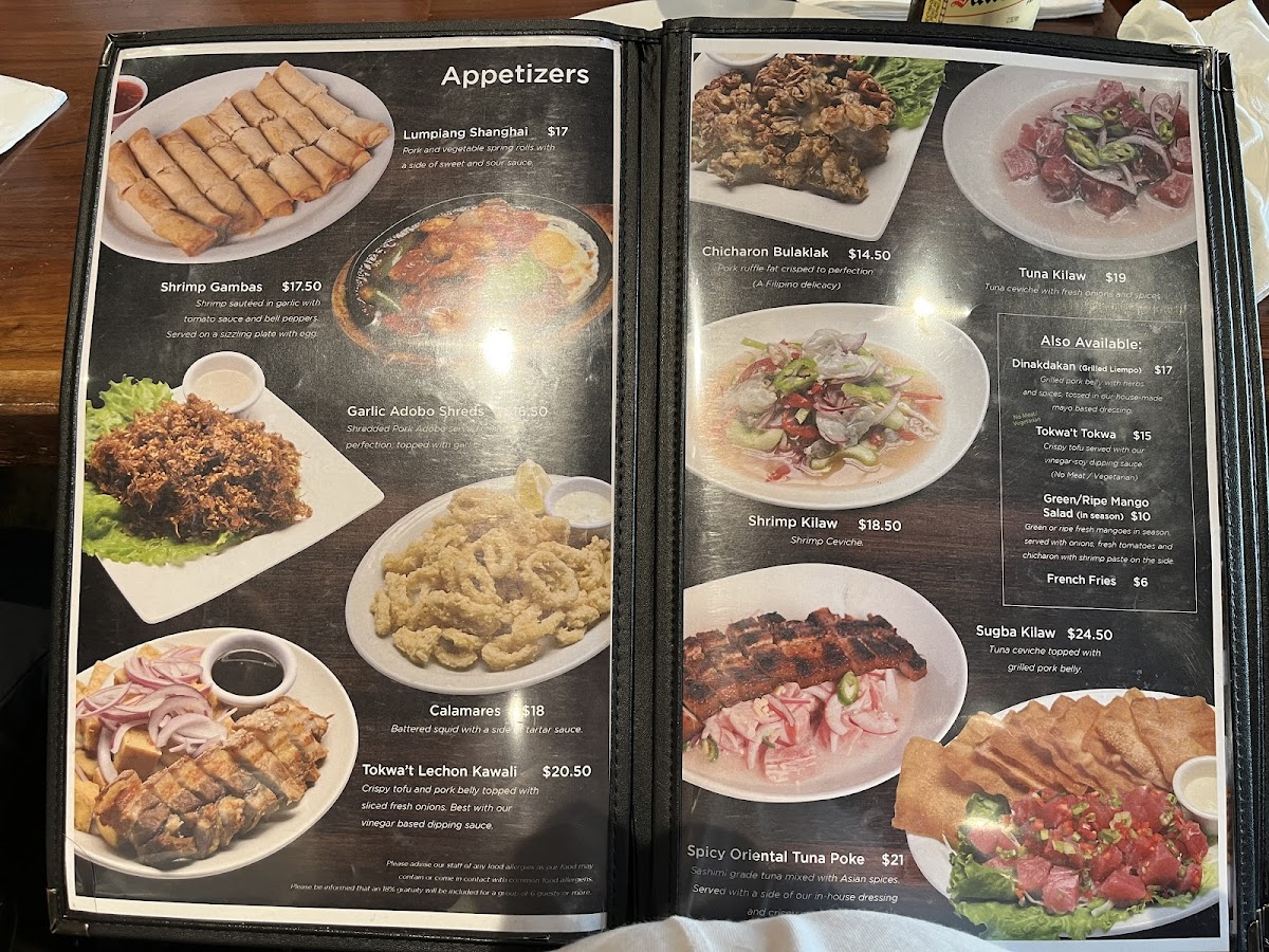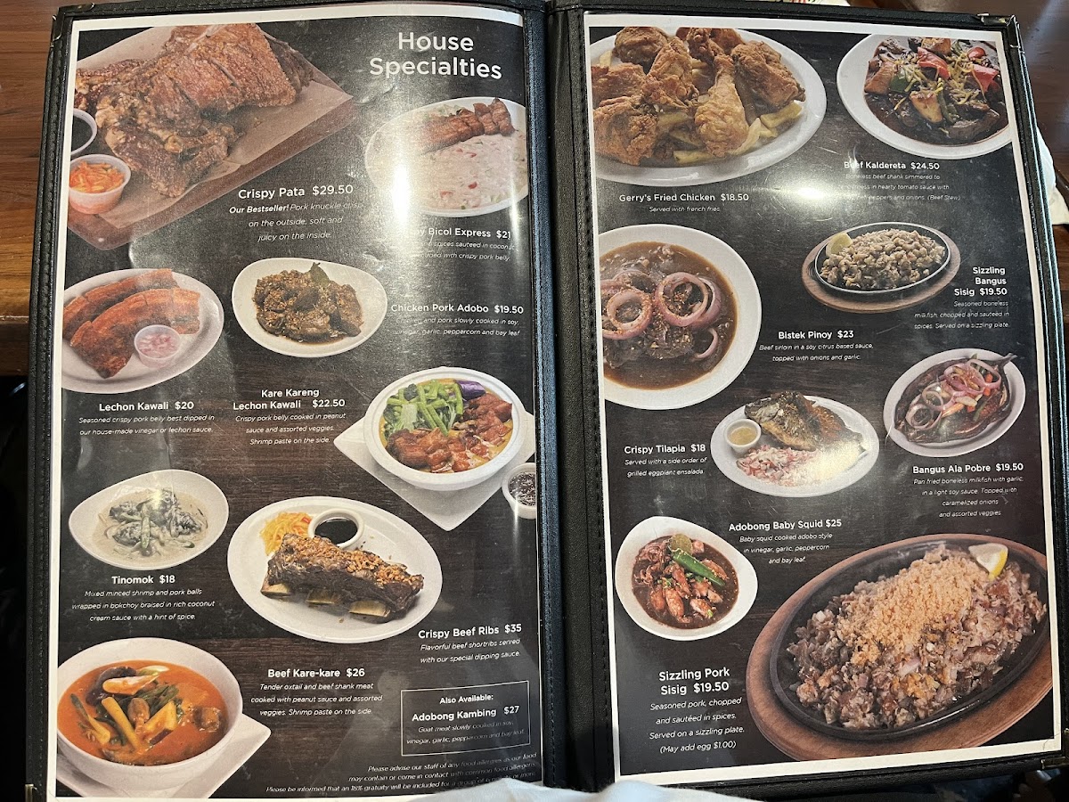 At Gerry's Grill, the focus is on authentic Filipino cuisine, and the menu is a testament to the rich flavors and culinary traditions of the Philippines. Begin your meal with enticing appetizers like Adobo Shreds, which features crispy fried pork adobo, or savor the perfectly fried Calamares served with a tangy dipping sauce. The Kilawin Tuna, their twist on tuna ceviche, is another must-try that bursts with freshness and zest, stimulating your taste buds from the very first bite.